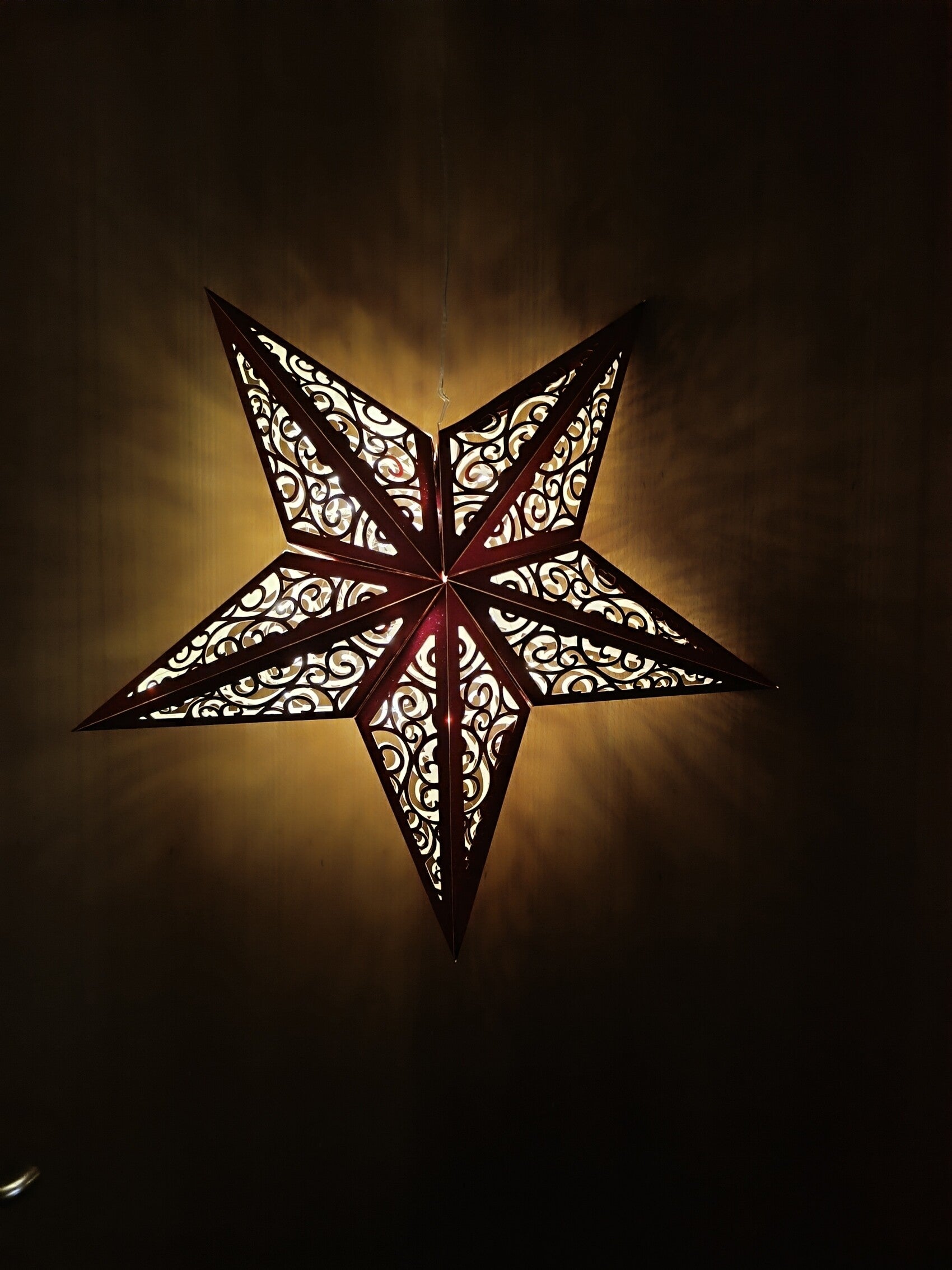 Aus hochglanz Karton ausgeschnittener Weihnachtsstern mit Beleuchtung (Timerfunktion)
